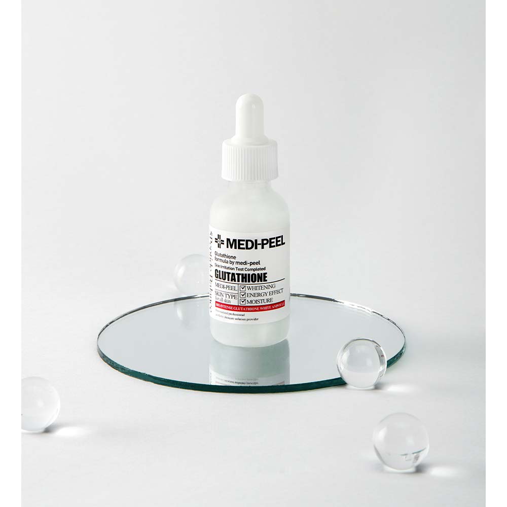 Η Bio Intense Glutathione White Ampoule από τη MEDI PEEL είναι ένας εξειδικευμένος ορός φωτεινότητας με βασικό συστατικό τη γλουταθειόνη (Glutathione) και νιασιναμίδη για ομοιόμορφο τόνο, μείωση μαύρων κηλίδων και λάμψη στην επιδερμίδα.
